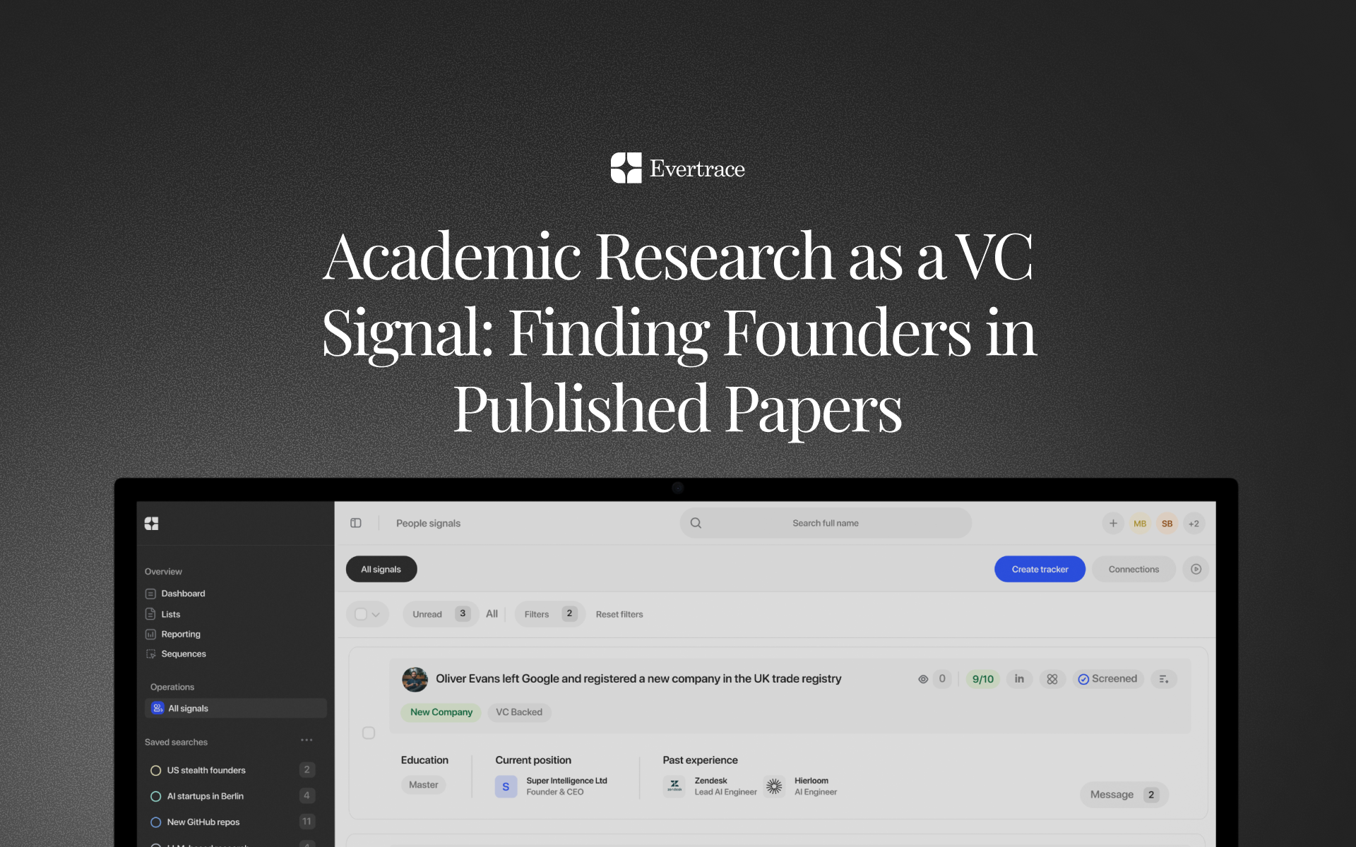 175+ VC firms globally use Evertrace to find deep tech and research-driven founders before any company announcement.
